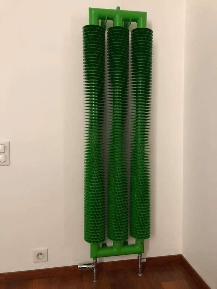 Retro Revolution HT III - radiateur de style industriel, trois tubes à ailettes verticaux. Les radiateurs Retro sont les radiateurs préférés des architectes et designers d' intérieur. Leur force est la longévité, une large variabilité et une grande performance thermique. Il est possible d'adapter la forme et la position des tubes en fonction de vos besoins. Ces tubes à ailettes sont conçus pour la pose murale avec un design à la fois rétro et moderne. Ils sont disponibles dans nombreux modèles avec une longueur depuis 500mm jusqu'à 2500mm et vous pouvez placer jusqu'à 6 tubes l'un au-dessus de l'autre. Le design retro unique sur mesure. La fabrication en acier inox possible. Le diamètre extérieur du tube est 57mm, l'épaisseur de la paroi du tube est 2,5mm, le diamètre extérieur de la spirale est 137mm, l'épaisseur de feuillard en acier (plissé et enroulé) est 1mm, le pas du filetage est 18mm. Les radiateurs dans le style industriel et rétro sont particulièrement appréciés pour la rénovation des lofts ou autres architectures contemporaines. L'implantation est réalisable aussi dans le tertiaire, l'hôtellerie, l'industrie, la santé et l'habitat.